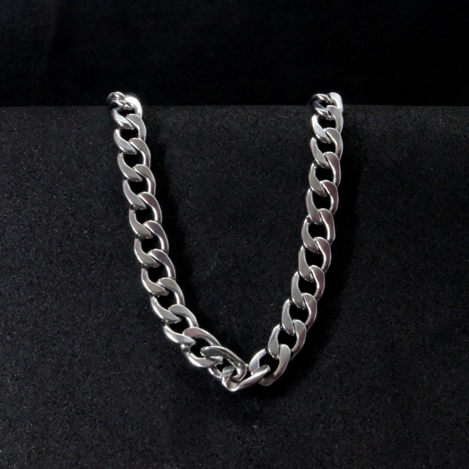 Presentamos el collar perfecto para quien valora la esencia del estilo. Una cadena cubana lisa de acero inoxidable, diseñada para ser la pieza fundamental de tu colección. Sin complicaciones, solo versatilidad y una estética urbana impecable para el día a día.
