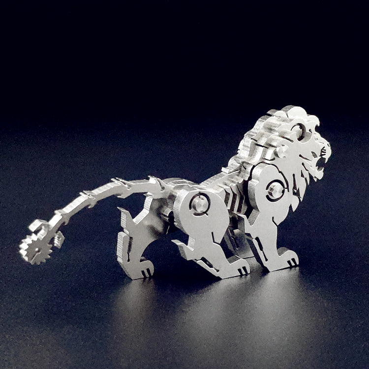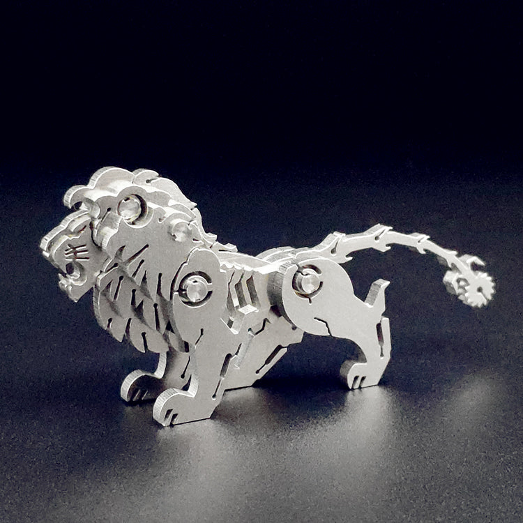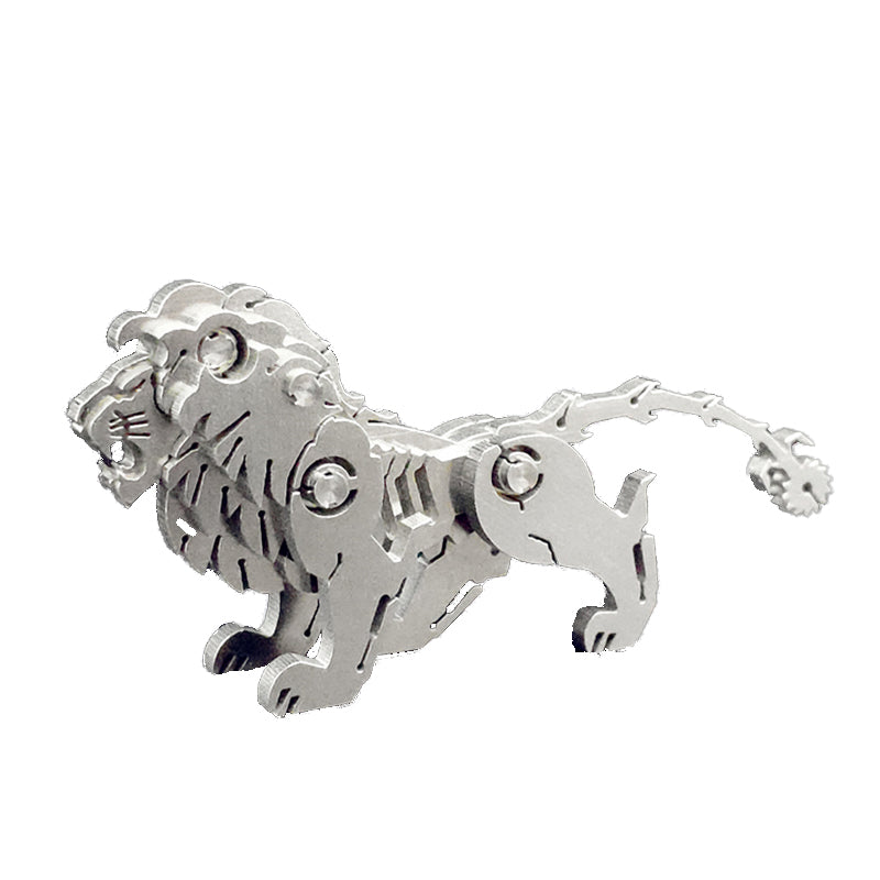 Este modelo metálico del león de Berbería está compuesto por piezas de acero inoxidable de alta calidad. Se ensambla manualmente sin necesidad de pegamento. El resultado final, tal como se muestra en la imagen, ofrece detalles realistas y un gran valor tanto decorativo como de colección.