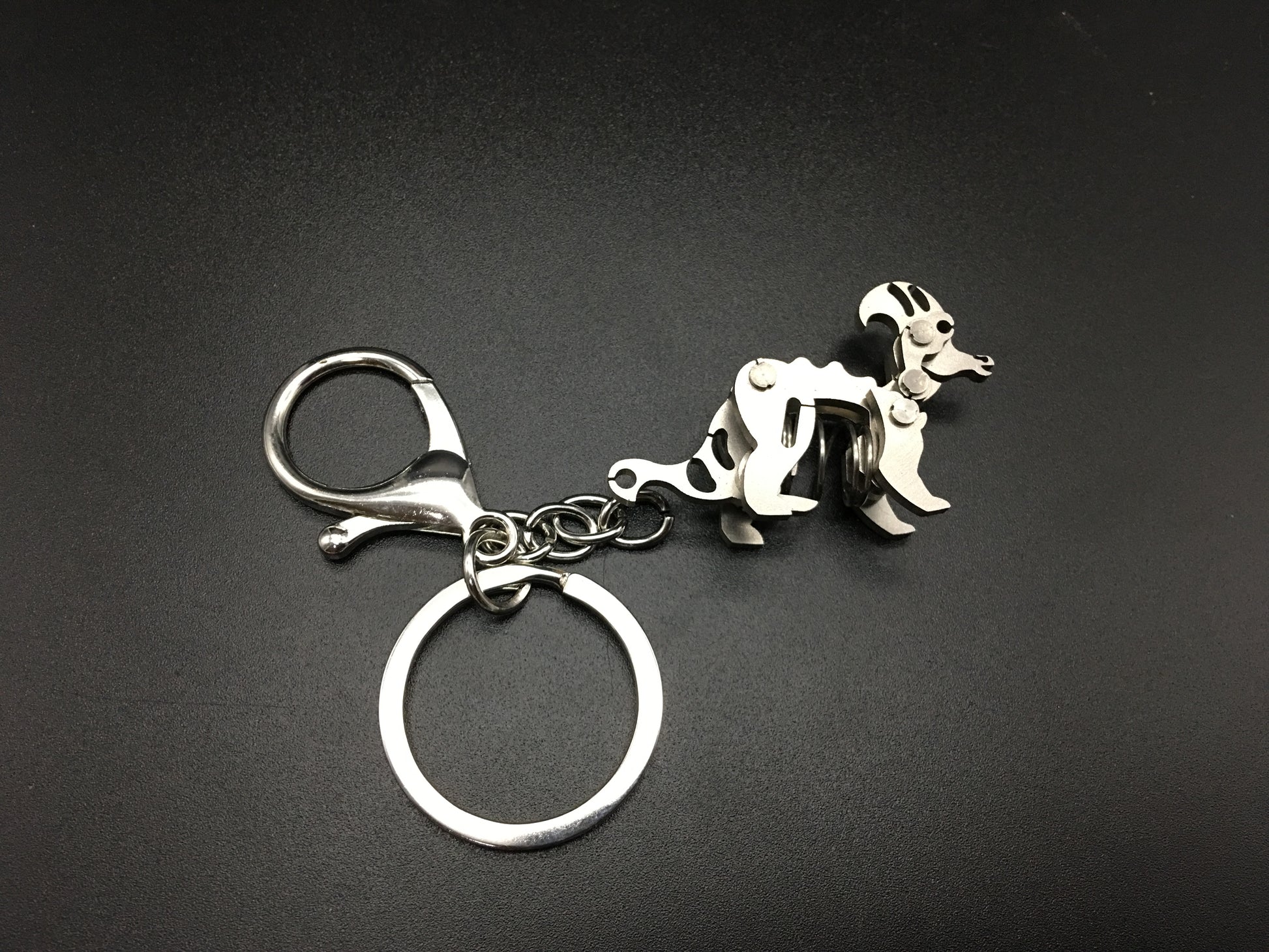 Fabricado en metal de alta calidad con un acabado plateado resistente, este llavero combina durabilidad y un diseño refinado. La anilla de acero asegura que tus llaves estén protegidas mientras exhibes una pieza de colección llena de significado prehistórico.