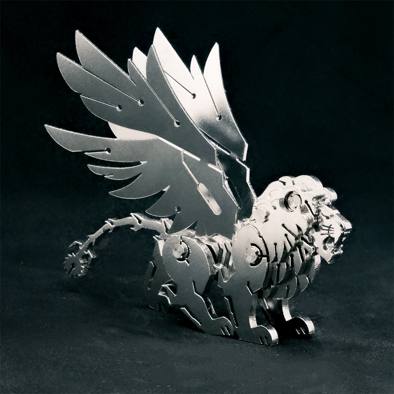 Libera la leyenda con nuestra maqueta metálica de la Mantícora, la temible bestia mitológica con cuerpo de león, alas de dragón y un aguijón venenoso en la cola. Este imponente guardián de la mitología persa cobra vida en un diseño lleno de detalles feroces y un carácter único, listo para vigilar tu estantería con su actitud desafiante.